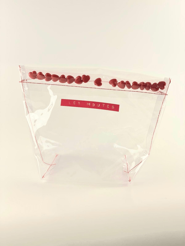 Offre à tes essentiels un écrin qui fait battre le cœur ! Cette pochette transparente, ornée de liserés en perles en cœur et d’une couture rouge éclatante, marie style et fonctionnalité. Que ce soit pour tes cosmétiques ou tes petits trésors, chaque objet y trouve sa place avec une touche d’amour.